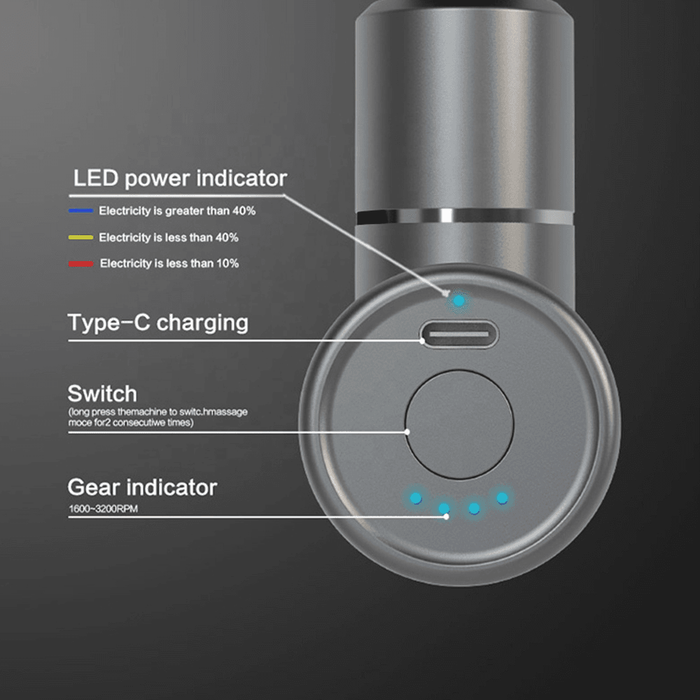 1100mAh Lithium Battery Long life battery (Up to 300 minutes) | Ultra-Portable Percussive massage gun muscle treatmentavailable anytme. |