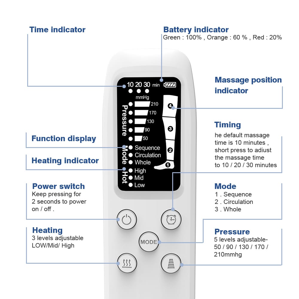 Pressure Intensity | 5 Levels (50-210mmHg) |