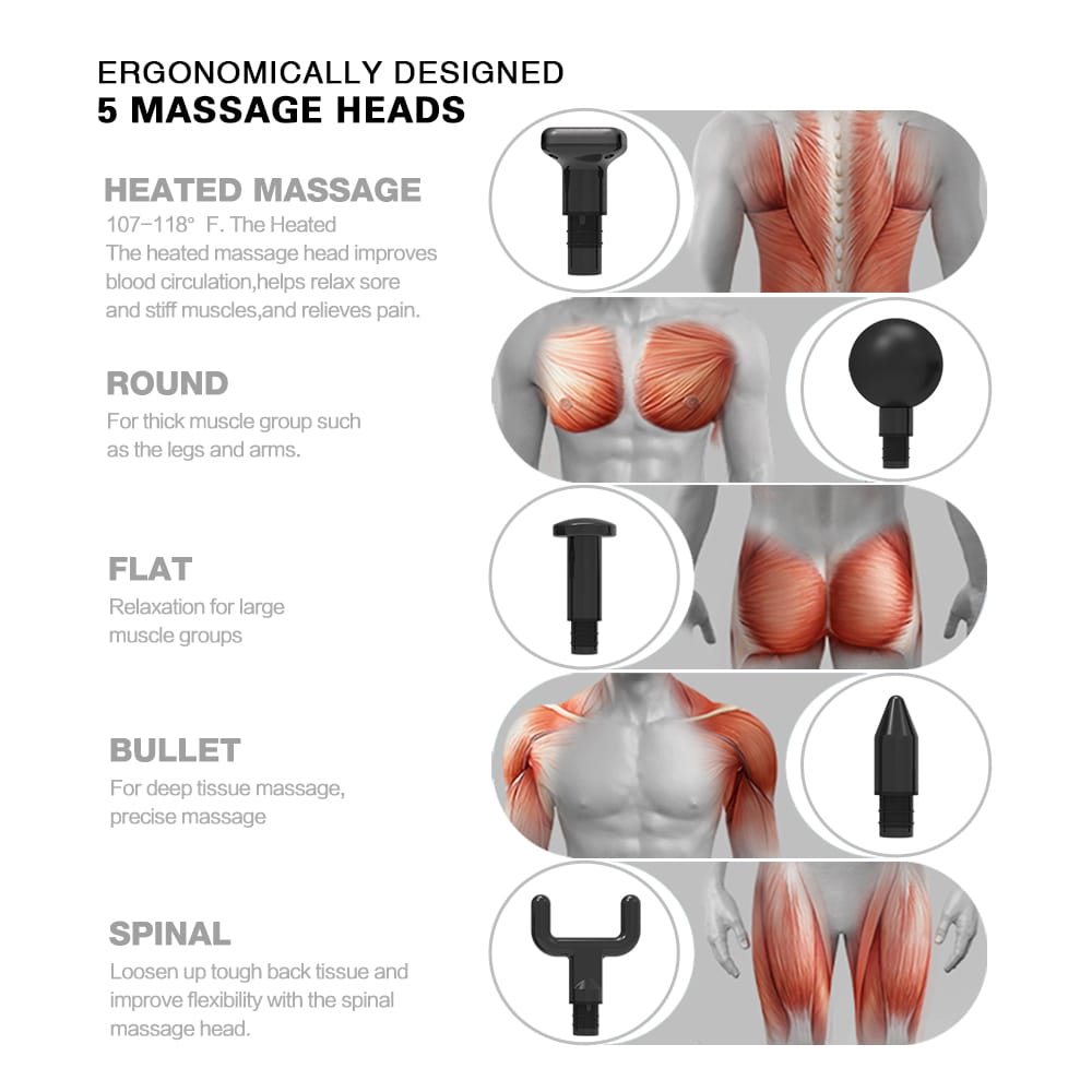 Versatile Attachment Heads Massage guns come with a variety of attachment heads designed for different muscle groups. Choose a model with multiple attachments to tailor your massage experience to specific areas of your body.